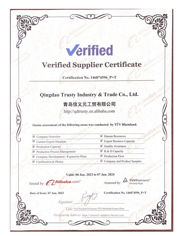 In June 2023, Alibaba International Station commissioned TUV testing institutions to our company for factory inspection. Our company successfully passed the audit of Alibaba Strength Factory.